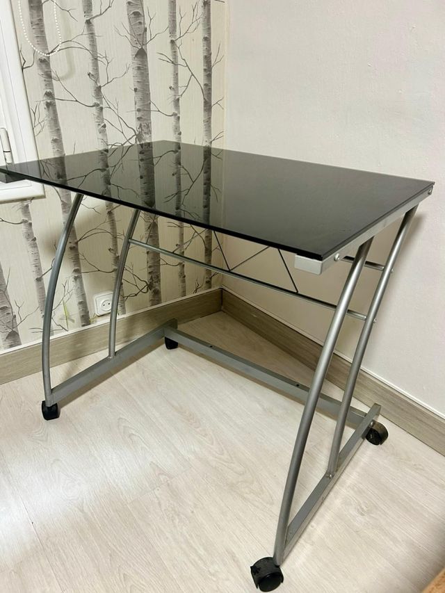 Mesa de cristal negra con estructura plateada