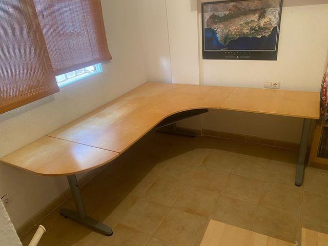 Detalles del productoVendo mesa de despacho de Ikea, modelo Galant. Es una mesa de formica con extensiones en ambos extremos. Es muy consistente y estable. La altura del tablero es regulable. Se encuentra en muy buen estado, con tan solo alguna zona ligeramente aclarada por el sol. Actualmente está desmontada, disponiendo de las instrucciones de montaje. Medidas del producto