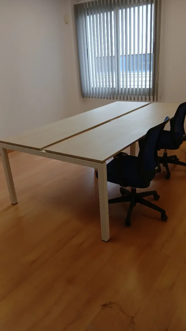 Mesa de escritorio madera y metal.
