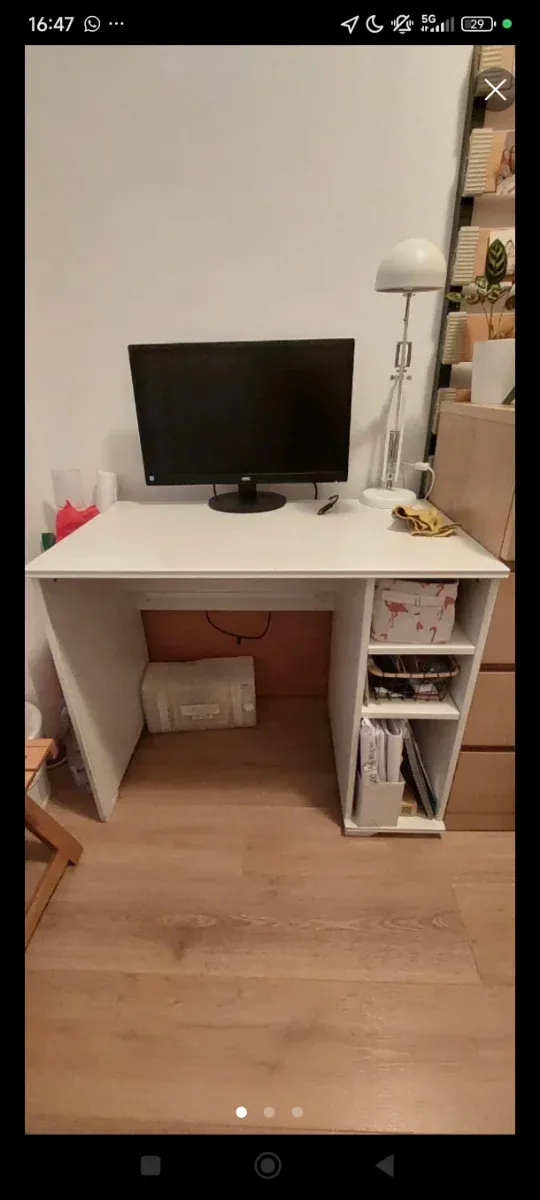Mesa de estudio blanca y madera