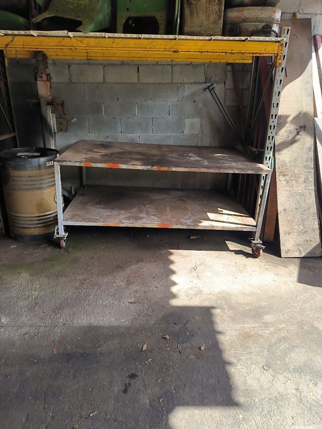Mesa de hierro .en la foto se ve con ruedas pero se vende sin ellas pues ya no las tiene tiene chapa de 3 mlm en las dos bases