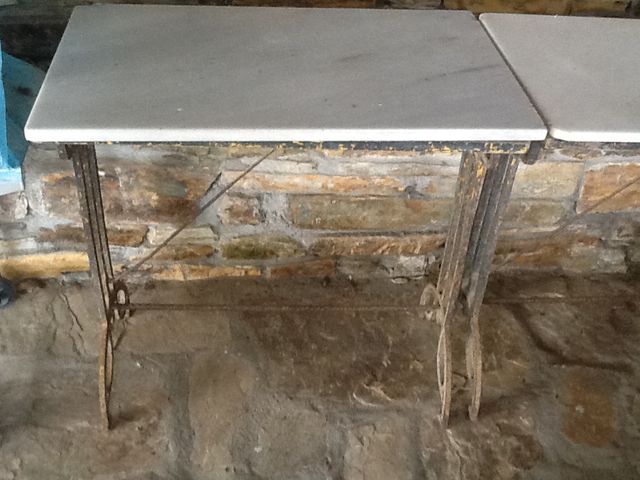Mesa con los pies de hierro y la tapa de mármol, de mediados del siglo pasado, muy utilizada en las grandes cafeterías.
