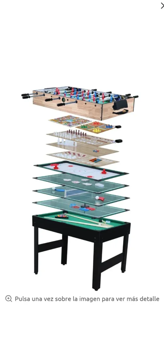 Detalles del productoMesa de juegos multifuncional que incluye varios tableros intercambiables para diferentes actividades.