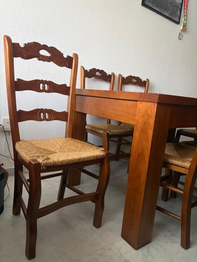 Mesa de madera maciza con 6 sillas extensibles