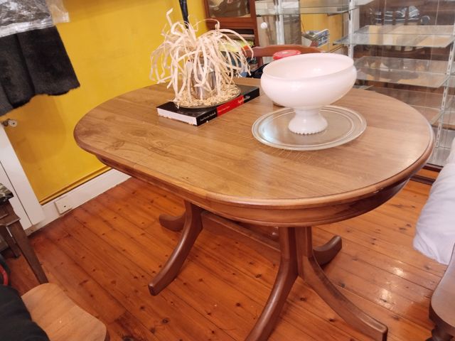 Detalles del productoConjunto de mesa de madera con seis sillas a juego. Ideal para comedor o cocina.