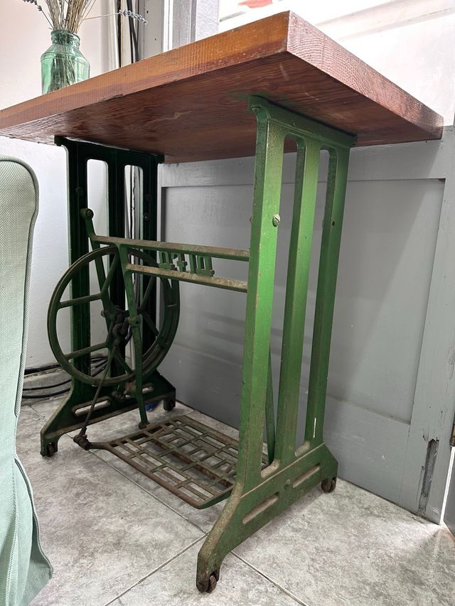 Mesa de madera y metal con pie de máquina Alfa