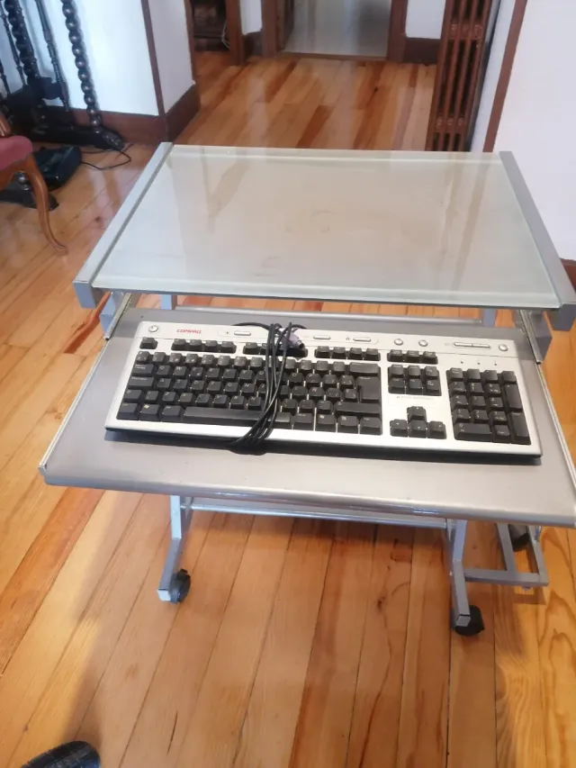 Mesa de ordenador cristal y metal