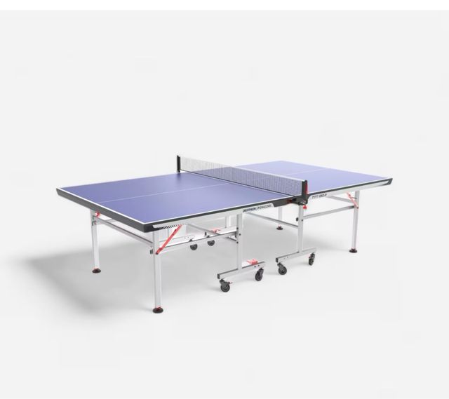 Detalles del productoMesa de ping pong de color azul, decathlon modelo PONGORI PPT 500.2 ideal para jugar en interiores o exteriores. Se pliega fácilmente para guardarla.