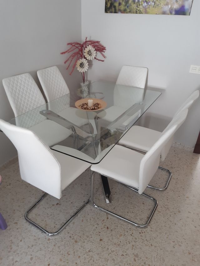 Mesa de salón cristal y 6 sillas diseño