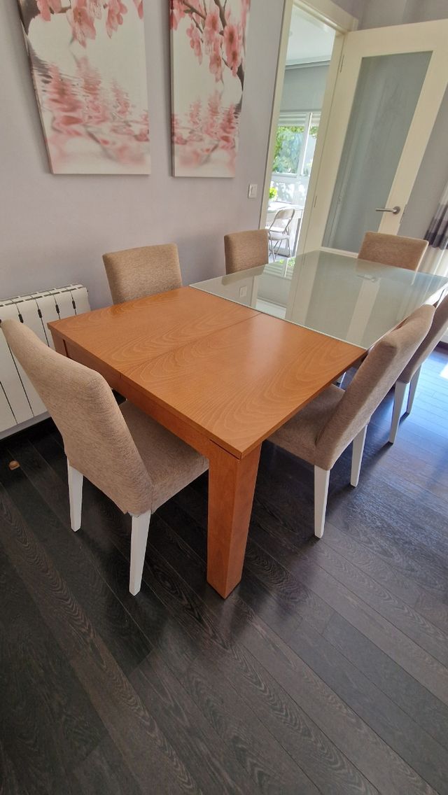 Como nuevo · Beige y Marrón · Tela y Vidrio y Madera