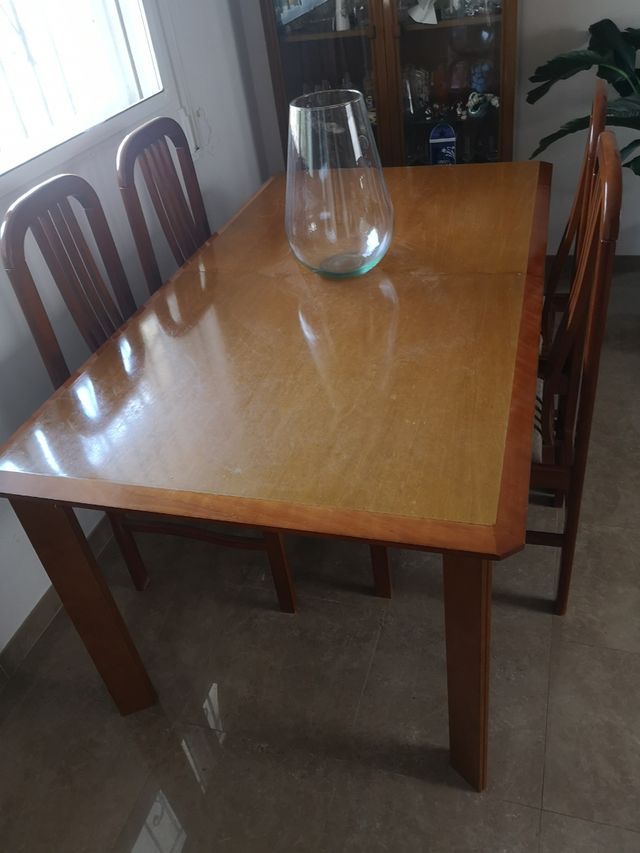 Mesa de salón extensible con 6 sillas de madera