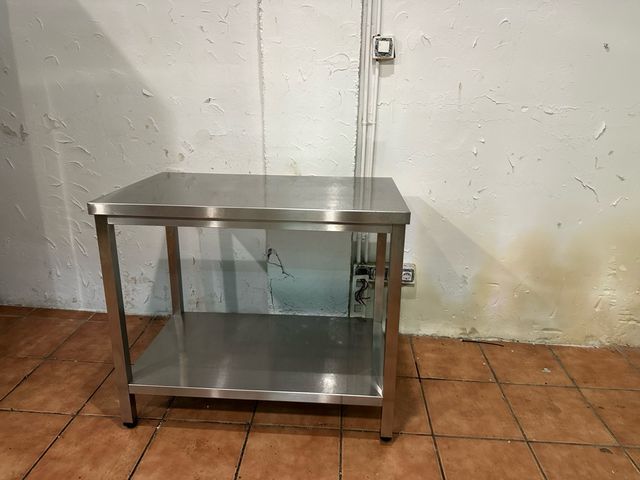 Detalles del productoMesa de trabajo de acero inoxidable con balda inferior.
