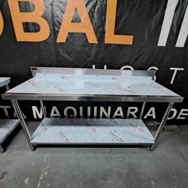 Detalles del productoMesa de trabajo de acero inoxidable. Estante inferior. Patas metálicas redondas. Maquinarias de hosteleria, iva y transp n/i.