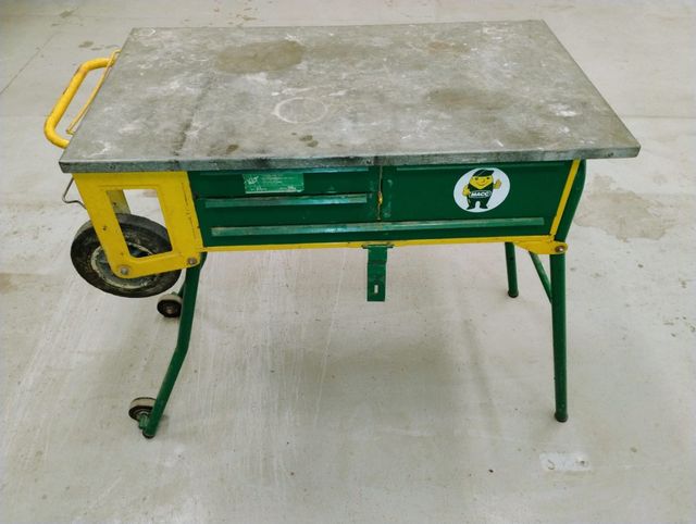 Ágil de mover, con ruedas para su desplazamiento horizontal una vez abierta. Recogida y plegada, dispone de ruedas grandes para desplazar cómodamente. Con freno en la rueda para impedir movimiento en el transporte (coche, furgoneta...). Muy resistente, con plancha metalica de refuerzo en la superfície de la mesa. Con cajones para clasificar y guardar accesorios, herramientas. Posible asegurar con candado la no apertura de los cajones.