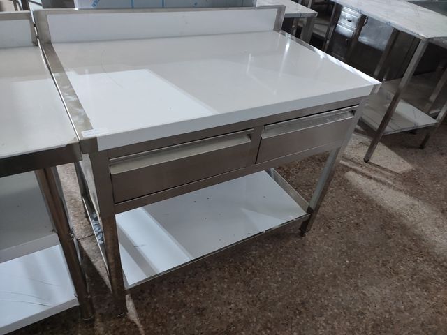 MESA DOBLE CON CAJONES ACERO INOX 1M