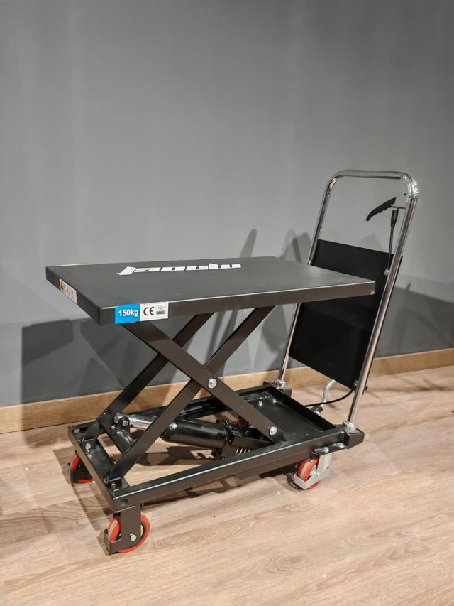 Detalles del producto¡Producto nuevo de tienda! Eleva tu trabajo al siguiente nivel con la Mesa Elevadora Hidráulica Moost 150Kg, ideal para talleres, almacenes y garajes. Con una capacidad de 150 Kg, ajuste de altura entre 23 y 74 cm y una estructura resistente, te proporciona estabilidad y seguridad en cada uso. Su diseño compacto y funcional facilita el manejo de cargas pesadas con total comodidad.