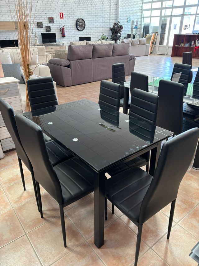 Detalles del productoMesa de cristal extensible perfecta para invitados ademas de ahorrate el espacio incluye 6 sillas de polipiel negras