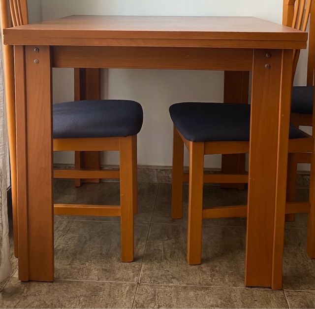 Detalles del productoMesa de comedor con tablero extensible y 6 sillas a juego.