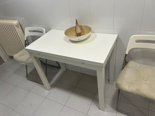 Detalles del productoConjunto de mesa extensible para cocina y dos sillas.