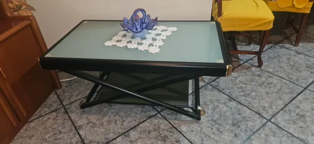 Mesa extensible cristal y metal negro/dorado