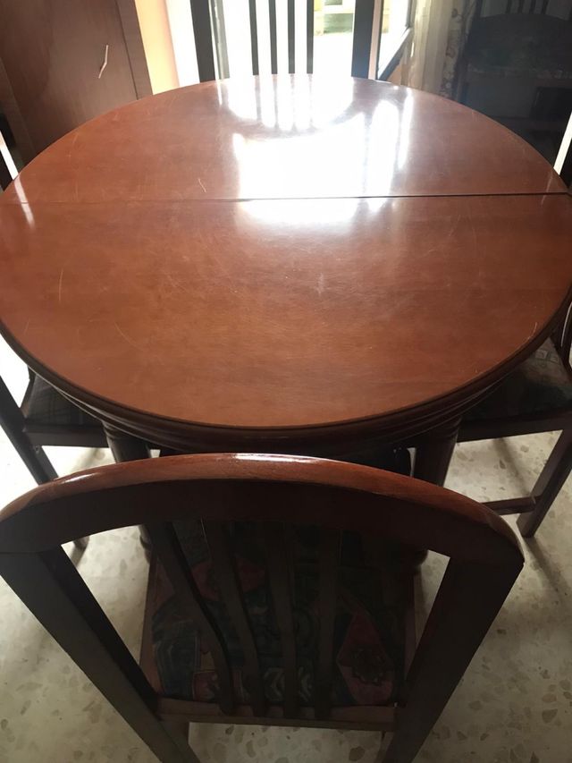 Mesa extensible de madera y 4 sillas