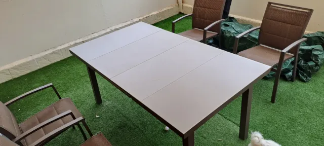 Detalles del productoMesa extensible para exterior con un diseño moderno y funcional. Perfecta para disfrutar de comidas al aire libre.