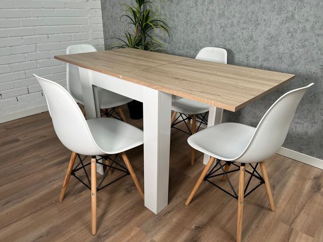 Nueva mesa extensible modelo FEROE con 4 sillas nordicas, fabricada en melamina reforzada de alta calidad, bastante practida ideal para comedor o cocina