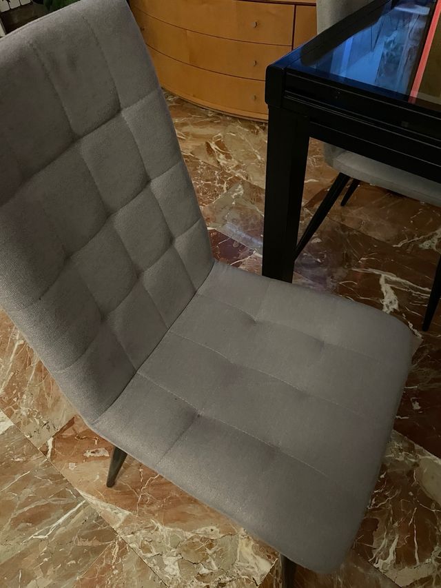 Conjunto de mesa extensible con cuatro sillas. abierta 90x180 cerrada 90x90 - Diseño moderno. - Tapizado en tela gris. - Patas de metal negro