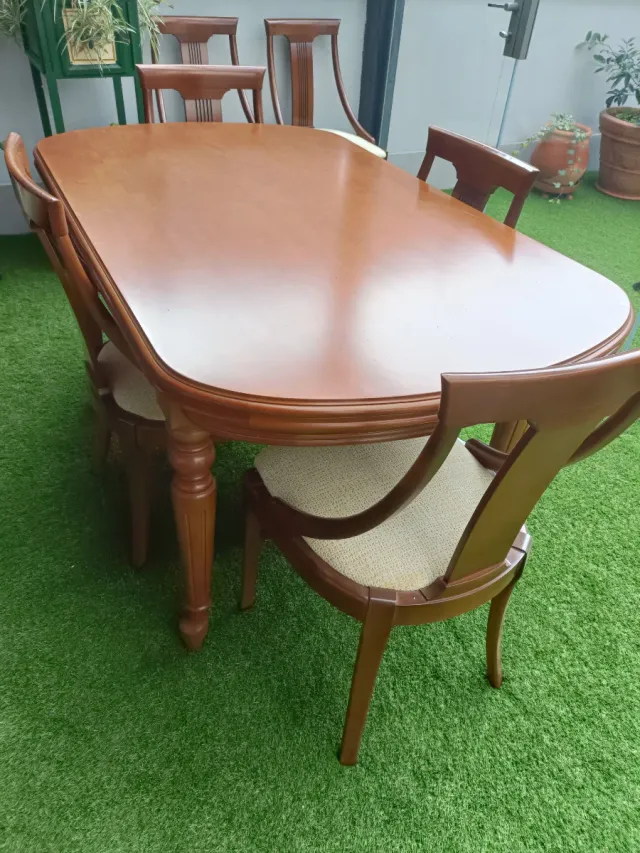 Detalles del productoConjunto de mesa extensible y seis sillas de comedor, ideal para reuniones familiares o cenas.