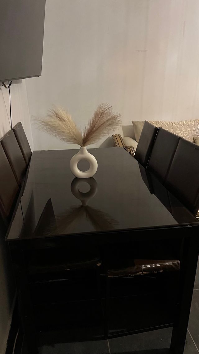 Mesa familiar con 6 sillas de cuero