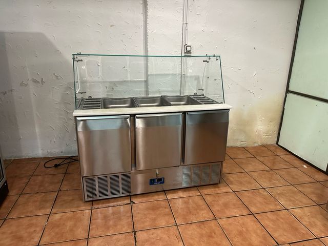 Detalles del productoMesa fría de preparación con estructura de acero inoxidable. Ideal para mantener ingredientes frescos.