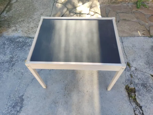 Mesa infantil de madera de Ikea, modelo Latt. Ideal para actividades creativas y juegos. - Estructura de madera clara. - Superficie negra pizarra - Patas estables.