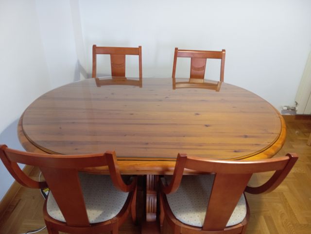 Mesa madera maciza caoba con cuatro sillas