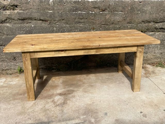 Mesa madera estilo rústicas granja ideales para tu casa o negocio. Fabricadas bajo pedido en madera maciza. Aptas para interior o exterior. Robustas de fabricación artesanal . Sobre madera maciza 4cm y patas madera viga 10x7cm. Medidas del precio de este anuncio: