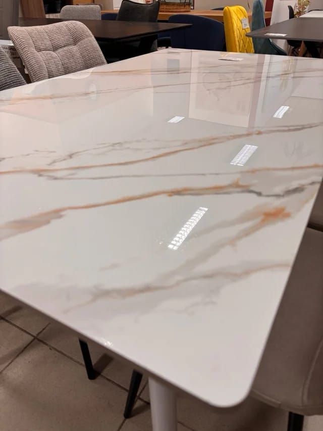 Mesa Mármol Blanca 160cm con Detalles Dorados