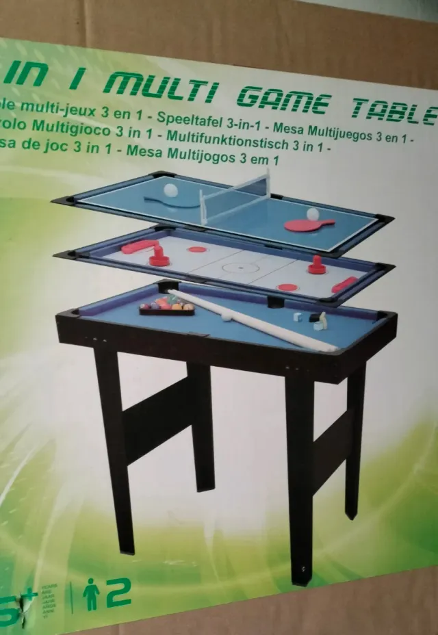 Mesa de juegos versátil que incluye varias opciones de entretenimiento. - Mesa de billar - Mesa de hockey de aire - Mesa de ping-pong