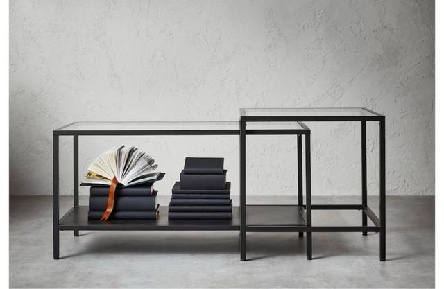 Mesa nido juego de 2 negro/marron vidrio, 90x50