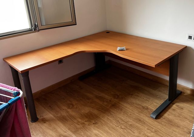 Detalles del productoMesa de oficina, despacho o escritorio. Medidas lado derecho 160 cm y lado izquierdo 180 cm, como nuevas, muy poco uso. Hay 2 mesas, una de cada configuracion, con las medidas al contrario. Lado derecho 180cm y lado izquierdo 160 cmSe entrega con todas las piezas.