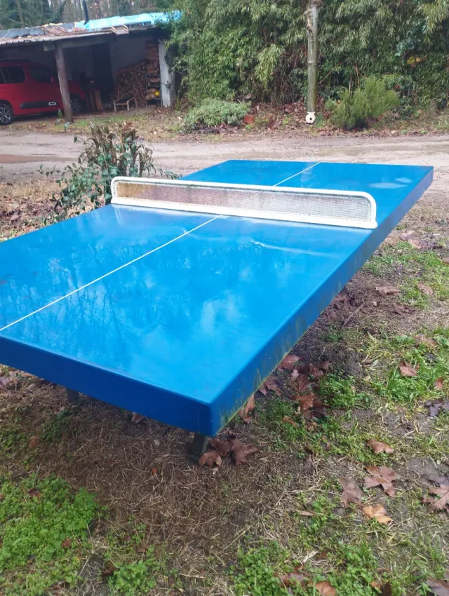 Detalles del productoMesa de ping pong robusta y resistente, diseñada para su uso en exteriores.