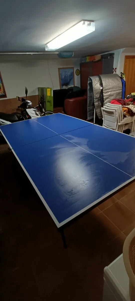 Detalles del productoMesa de ping pong de color azul, ideal para disfrutar en casa. Se incluye un set de accesorios para empezar a jugar algo desgastado las palas, 3 redes y 6 pelotas de ping-pong