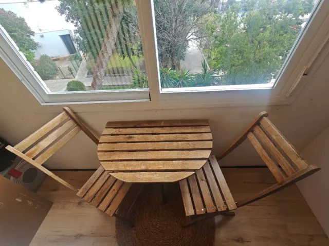 Mesa plegable 70x43 y 2 sillas plegables terraza