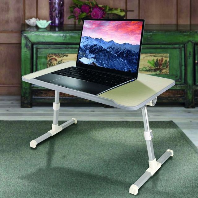 Detalles del productoMesa portátil ajustable con ventilador USB para portátil, ideal para trabajar o estudiar en cama, sofá o escritorio. Tablero de MDF resistente y patas de aluminio ligeras y estables. Dimensiones: 60×23 cm, altura regulable entre 24 y 32 cm con 5 niveles y ángulo inclinable para mayor ergonomía. Diseño plegable con bordes antideslizantes y patas con goma para evitar deslizamientos. Ventilador USB integrado que evita el sobrecalentamiento del equipo. Perfecta para teletrabajo, lectura, clases online o desayuno en la cama.