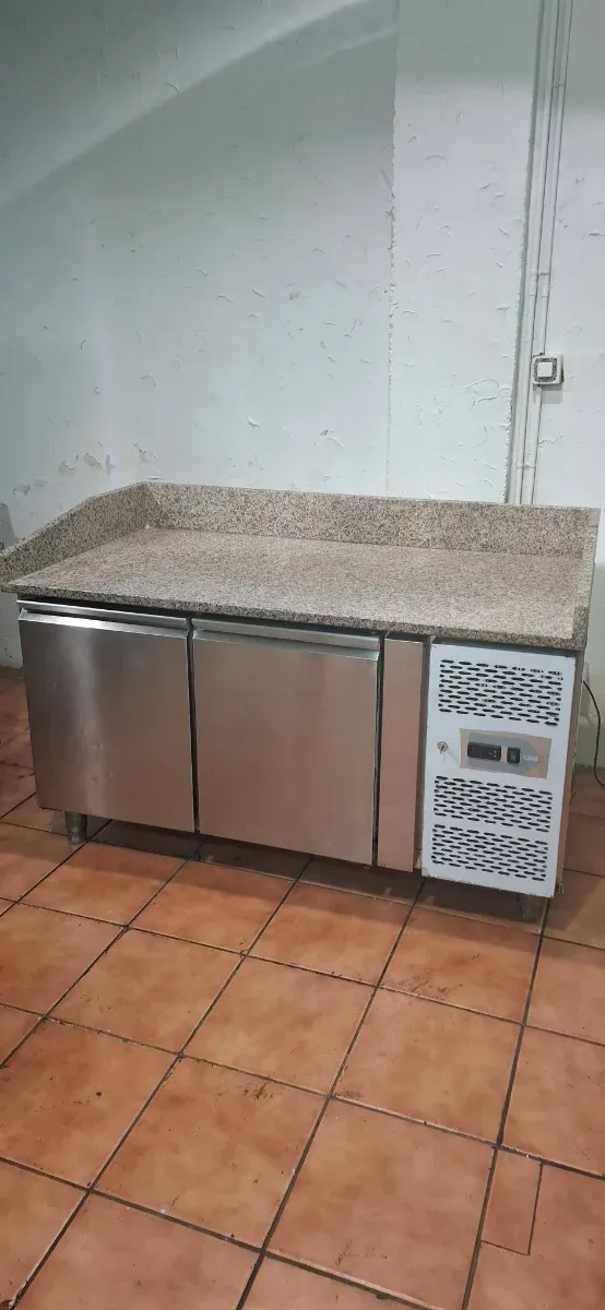Detalles del productoMesa de preparación de acero inoxidable con encimera de granito.