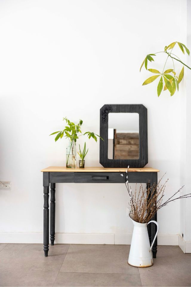 Mesa recibidor y espejo madera pintado a la tiza
