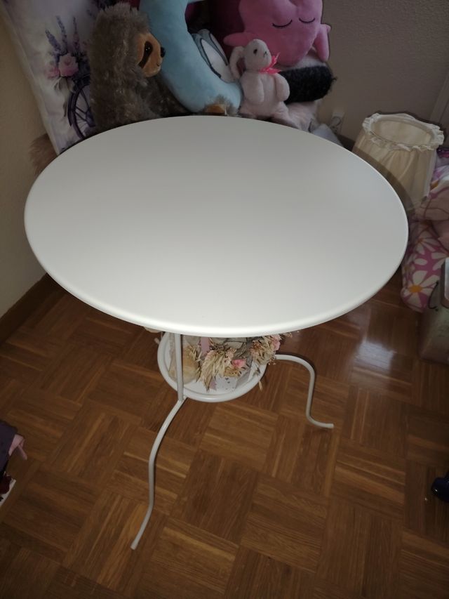 Mesa redonda blanca metalica