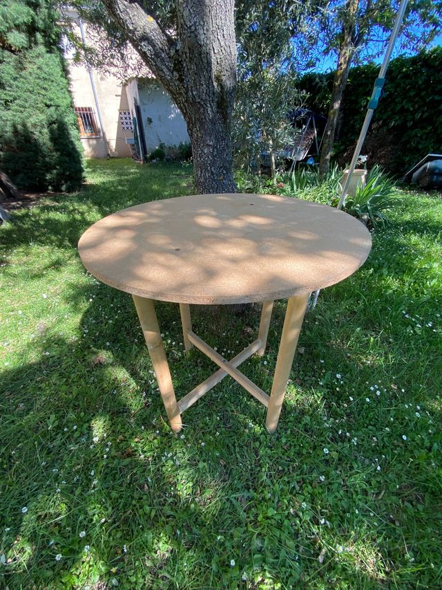 Mesa en buen estado de madera. Medidas: 70 cm diámetro 75 cm de alto