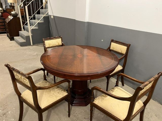 Mesa redonda caoba extensible + 4 sillas