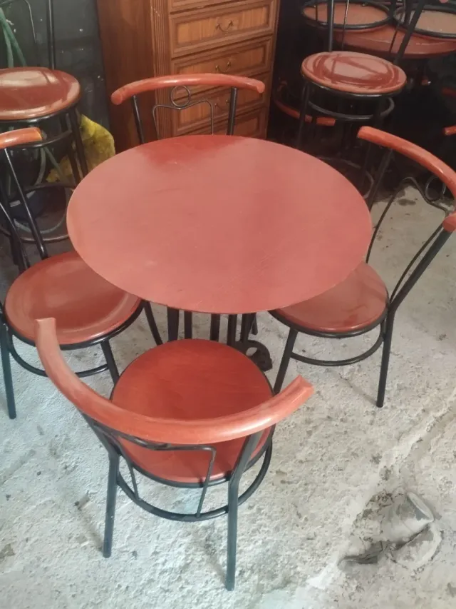 Detalles del productoConjunto de mesa redonda y cuatro sillas, tienda de segunda mano poeta infante Don Juan Manuel 25 Almería Tel 666046042