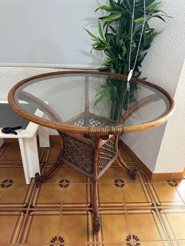 Mesa redonda mimbre y cristal