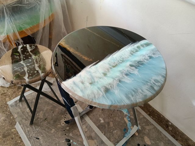 Mesa redonda resina epoxi, trabajos de porcelanato